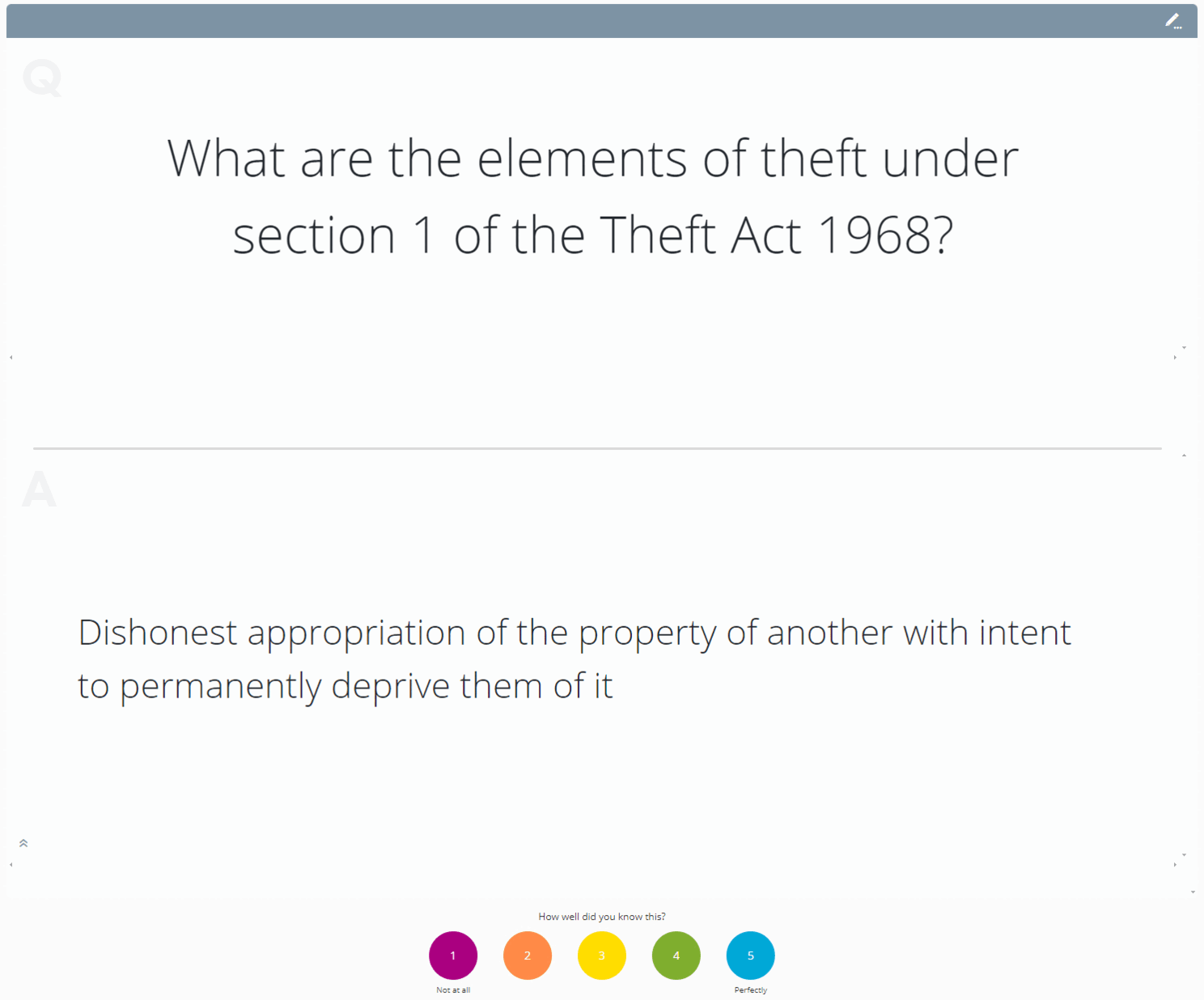 Over 170 digital flashcards on Criminal Law covering the SRA syllabus for SQE1 and SQE2. Access a preview of 10 flashcards by clicking here.