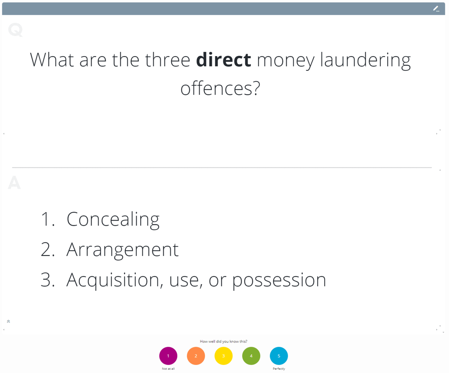 - Money Laundering (tested on SQE2)
