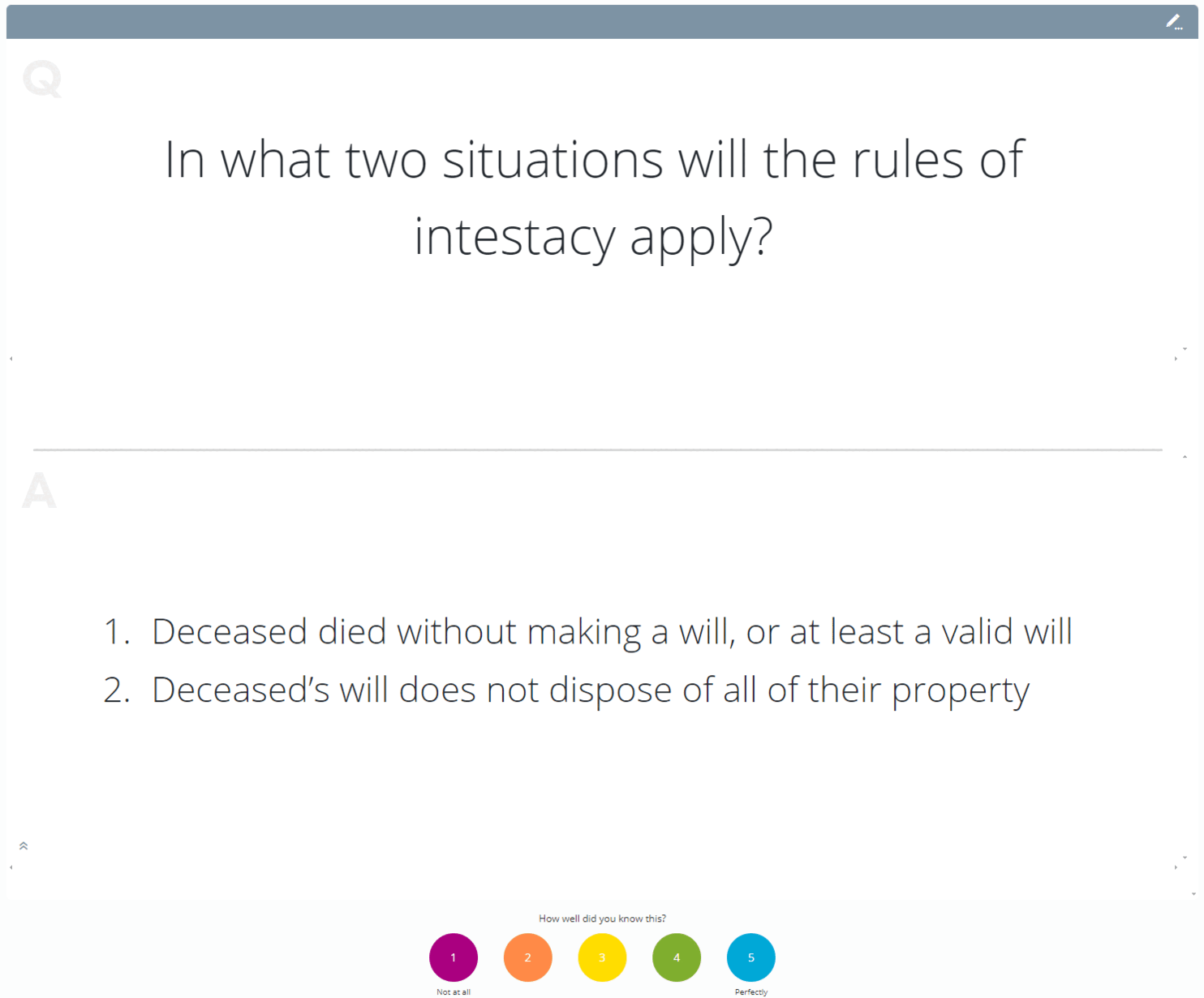Over 230 digital flashcards on Wills and Estate Administration covering the SRA syllabus for SQE1 and SQE2. Access a preview of 10 flashcards here.